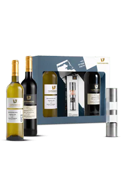 בקבוק קברנה סוביניון & מרלו + בקבוק פרנץ' קולומבר +מלחייה ופלפלייה איכותית